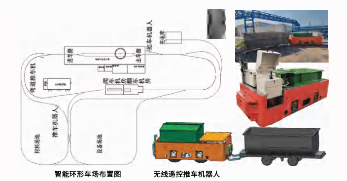 為響應國家煤礦安監局《煤礦機器人重點研發目錄》運輸類第十七條“車場推車機器人”的要求,我公司研發了環形車場智能推車機器人。采用AI視頻監控及自動道岔為輔,自動推車機器人及彎道推車機相輔助的推車系統,基于AI圖像智能識別技術、精確定位技術、無線傳輸技術及模糊控制技術,我們開發了井口車場運行狀態感知系統。通過程控或遠程無線遙控操作+自動道岔+AI智能圖像識別系統,從而形成整個井口車場的從罐籠升井罐門、罐內阻自動開閉+操車系統自動推車+礦車進入環形車場自動運轉+空車進入罐籠入井的整套無人值守智能化運轉系統。使車場運行達到機械化減人,自動化換人,智能化增效的目的。采用該自動化無人環形智能車場,將會大大提高礦井生產的安全保障能力,加強煤礦的安全生產標準化建設。